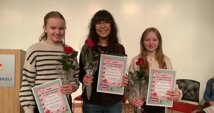 Þrír nemendur hlutu sérstaka viðurkenningu fyrir framúrskarandi upplestur og framsögn og munu keppa fyrir hönd skólans í lokakeppni Kópavogsbæjar.